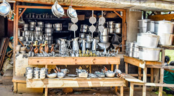 Arrêt à Ambatolampy, petite ville réputée pour ses ateliers de fabrication artisanale de marmites en aluminium.